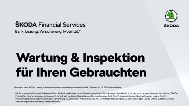 **Diese Leistung umfasst den Anspruch auf eine begrenzte Übernahme der Kosten bis zu 35 Euro für Ersatzmobilität (z. B. Mietwagen). Der Skoda Partner entscheidet über die Art der Ersatzmobilität. Die Ersatzmobilität gilt nur in Zusammenhang mit Leistungen, die durch die Dienstleistung abgedeckt werden. Sie wird für einen Tag je Wartung oder Inspektion gewährt.